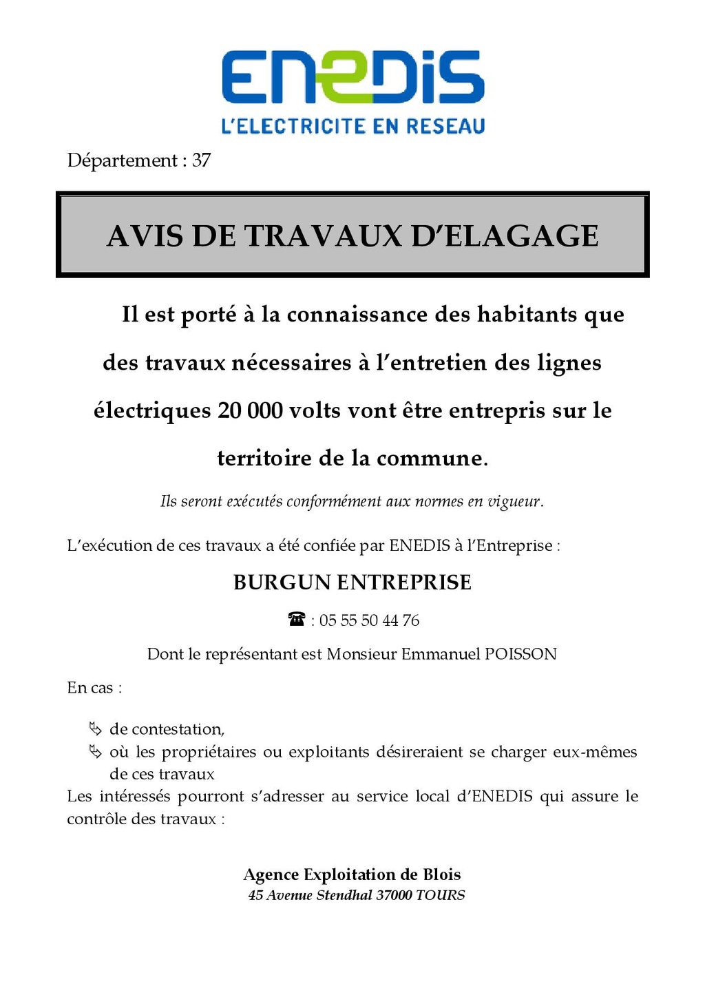 Agence Exploitation Electricité de Blois est en charge des travaux.